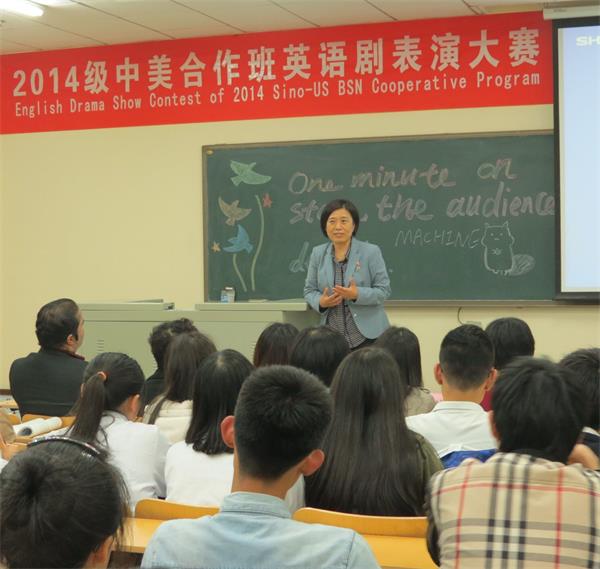 比赛结束后,刘茂菊主任用流利的英语对本次比赛做了点评,对同学们提出了“多读、多写、多背”的建议。留学生Azher ali balwanye 对中美班大一新生的表现表示称赞。护理学院院长班博作总结讲话,她肯定了同学们的表演,对14级中美班的同学们提出了要求,表达了对同学们的殷切期望。