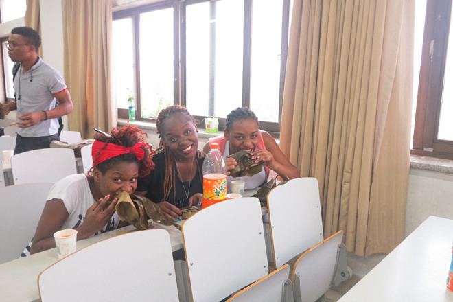 活动中,授课老师介绍了端午节的来历和风俗,中外同学表演了诗朗诵节目,共同分享了甜美的粽子。