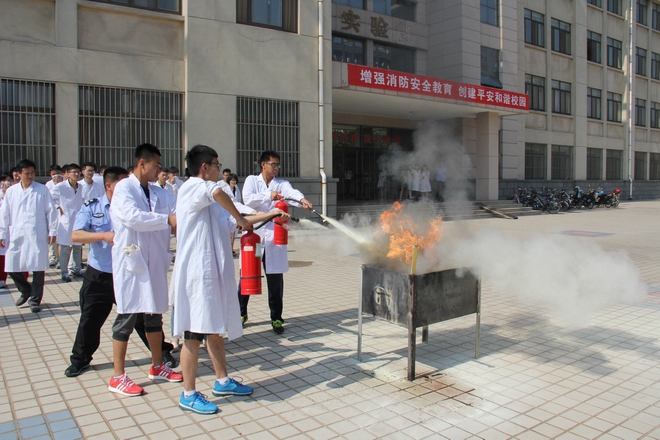17日下午3:00,在药学院实验楼,药学院师生集中开展了一场师生消防演练活动。在日照市消防局防火处有关专家的观摩指导下,现场师生进行了实验楼突遇火情时的逃生演练,听取了安保人员讲解的如何正确使用灭火器。随后,现场师生分组使用灭火器对如何扑救初级火灾进行了操作演练。