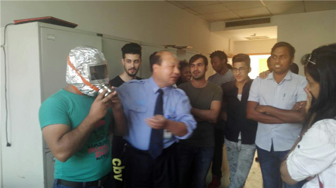 9月19日,国际交流合作部和附院留学生管理办公室对2013级留学生公寓和公共厨房进行了安全隐患大排查,并对学生进行了消防安全知识及逃生自救技能实地培训。附属医院保卫处工作人员就安全用电、消防设施、安全出口以及宿舍防火防盗等问题进行了详细讲解,为留学生们演示了泡沫灭火器和逃生面具的使用方法,并让学生进行了现场操作。通过学习,留学生们了解并掌握了基本的安全知识和防护措施。