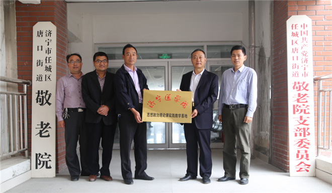 其间,马克思主义学院负责人秦建中、张秋生、毕于建与唐口敬老院领导李强、刘守卫共同举行了“济宁医学院思想政治理论课实践教学基地”挂牌仪式,唐口敬老院将作为我校思想政治理论课实践基地,定期派遣师生前去开展志愿服务和思政课实践教学。