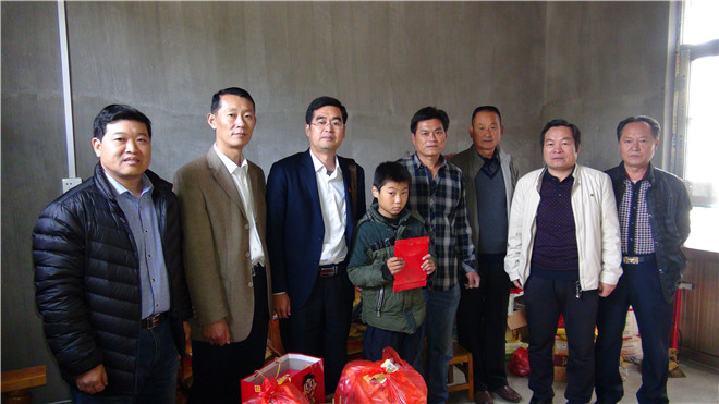 随后,大家来到贫困留守儿童蒋涵家里走访慰问。蒋涵同学家境贫寒,母亲患有重病,借住在邻居的房屋里,虽然年仅10岁,但他意志坚强、学习刻苦,品学兼优。张良鼓励蒋涵要好好学习,克服暂时困难,立志考上大学,实现自己的人生理想,将来回报社会。他代表后勤管理处党总支向蒋涵同学发放爱心助学款1000元和生活用品。