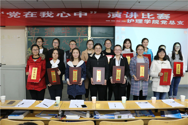 为深入开展“两学一做”学习教育,重温党的光辉历史,护理学院于11月3日晚在教学楼211教室举办了“党在我心中”演讲比赛。护理学院党总支副书记、副院长陈玉芹,学生管理科、部分辅导员与2014级、2015级学生代表、入党积极分子共同观看比赛。