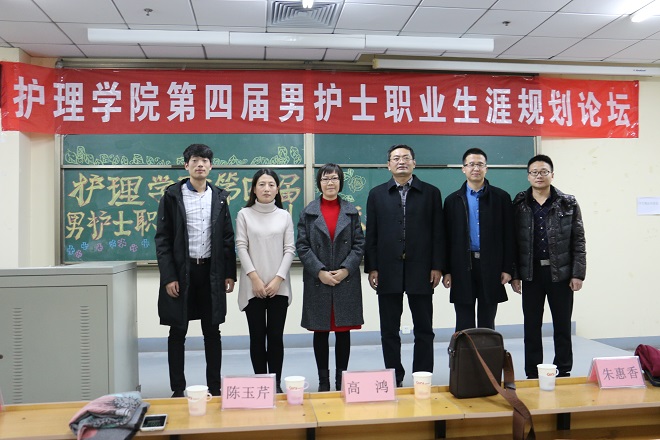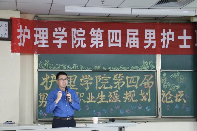 2016年11月24日18时30分,护理学院第四届男护士职业生涯规划论坛在202教室成功举办。出席本次论坛的有护理学院党总支书记高鸿、党总支副书记副院长陈玉芹、学生管理科和相关辅导员老师。本次论坛邀请了济宁医学院附属医院ICU护士长张立文,2011级毕业生陈宗阳,2016级毕业生张永浩来为全院男护士做了报告。