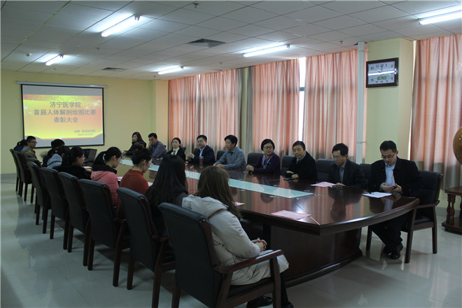 12月14日上午,我校首届人体解剖绘图比赛表彰大会在基础医学院会议室举行。基础医学院领导王传功、郭子林、宋艳红、陈宁出席表彰会并为获奖同学颁奖。会上,郭子林代表基础医学院讲话,人体解剖学教研室主任徐旭东宣读获奖同学名单。校团委、基础医学院相关科室负责人及获奖学生代表参加表彰会。至此,我校首届人体解剖绘图比赛落下帷幕。
