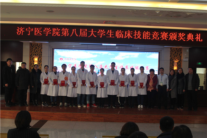 比赛现场紧张有序,各位选手尽显身手,充分展示了各自熟练的操作技能。经过激烈角逐,济宁医学院枣矿集团临床学院代表队荣获集体特等奖,济宁医学院附属医院临床一队、济宁医学院第二临床学院代表队(济医附院)、济宁医学院精神医学代表队(济医附院)荣获集体一等奖;王明尧、冯雅倩等24名选手获得比赛单项奖;陆信仰和戴雯等18位教师荣获优秀指导教师称号,枣庄矿业集团中心医院获大赛优秀组织奖。闭幕式上,与会领导为获奖集体和个人进行颁奖。