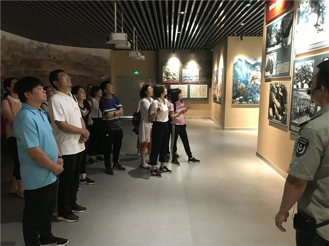 在孟良崮战役纪念馆,全体党员怀着崇敬的心情,集体瞻仰了英烈纪念碑,听取了解说员对战役经过、烈士事迹以及全民支前情景的讲解。一件件历史文物、一幅幅珍贵图片、一桩桩感人至深的往事,一段段文字记录,生动展示了革命先烈们为共产主义理想而奋斗的光辉历程,生动诠释了革命战争年代军民水乳交融、生死与共铸就的沂蒙精神。大家深刻领悟了“兵民是胜利之本”“群众是真正的英雄”的真理。