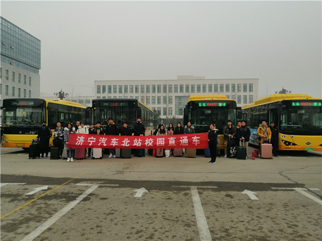 2020年寒假来临,为解决学生乘车难、行李多、多次换乘问题,学生工作处联合济宁汽车北站开通寒假校园直通车服务,送同学们温暖返乡,回家过年。