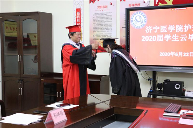 6月22日下午,护理学院举办2020届学生云毕业典礼。护理学院党总支书记高鸿,院长王文军,副院长、副书记陈玉芹,副院长刘鹏飞,毕业班辅导员参加典礼,党总支副书记杨绪霞主持典礼。