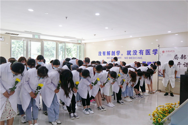 为追思遗体捐献志愿者,弘扬“人道、博爱、奉献”的红十字精神,感恩“无语良师”为医药学事业做出的贡献,激发医学生学习热情,9月14日至18日,基础医学院举办局部解剖学开课仪式暨“感恩大爱、永铭初心”主题教育活动。