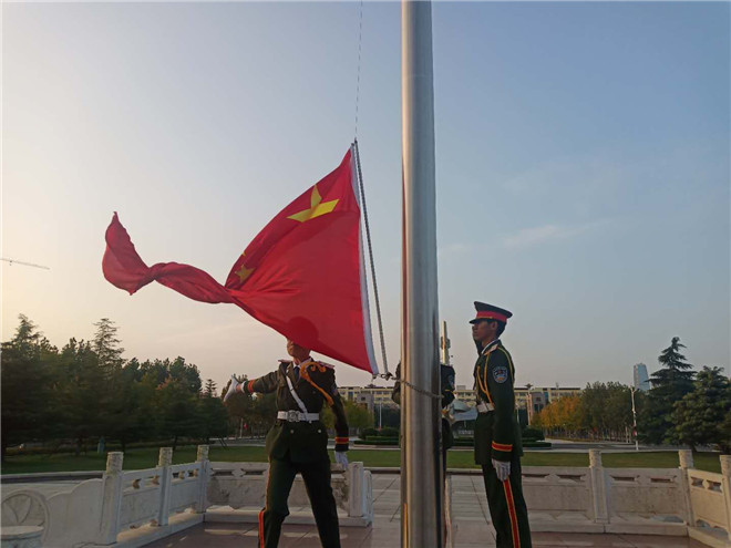 为庆祝中华人民共和国成立71周年,激发广大青年学子的爱国之情和报国之志,10月1日清晨,学校在太白湖校区和日照校区举行升国旗仪式,为2020级新生上了一堂生动的爱国主义教育课。