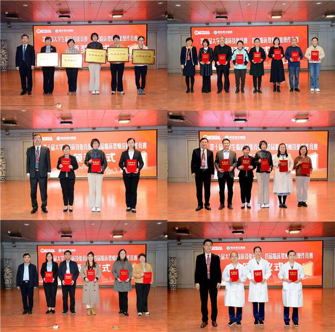 竞赛设置内、外、妇、儿各科和急救等20个项目,采用多站式进行比赛,设置12个考站。两个赛事分别设单项奖、优秀指导教师奖、团体奖、优秀组织奖等奖项,团体奖设一等奖、二等奖和三等奖。比赛现场紧张有序,各位选手沉着冷静,展现了熟练沉稳的操作技能、科学的临床思维、良好的医学人文精神和默契的团队配合。经过一天的激烈角逐,各项赛程圆满完成。济宁医学院附属医院代表队、单县中心医院代表队、枣庄市立医院代表队荣获学生临床技能竞赛团体一等奖;济宁医学院附属医院第一、二代表队、单县中心医院代表队、东平县人民医院代表队、枣庄市立医院代表队荣获临床教师技能操作竞赛团体一等奖,其他代表队和选手分获团体二、三等奖和个人奖项。