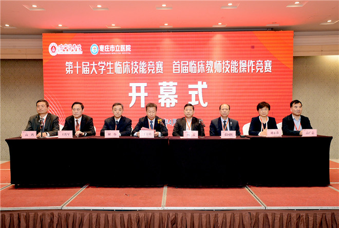 为深入落实全国、全省教育工作会议精神,推进医学教育创新发展,提升医学人才培养质量,4月7日至8日,学校第十届大学生临床技能竞赛、首届临床教师技能操作竞赛决赛在枣庄市立医院举行。学校党委委员、副院长于景科,枣庄市卫健委党组书记、主任杨雷出席活动。学校23家附属医院、教学医院组织的17支学生代表队和24支临床教师代表队参赛。实践教学管理处处长高鸿和枣庄市立医院党委书记解伟分别主持开、闭幕式。