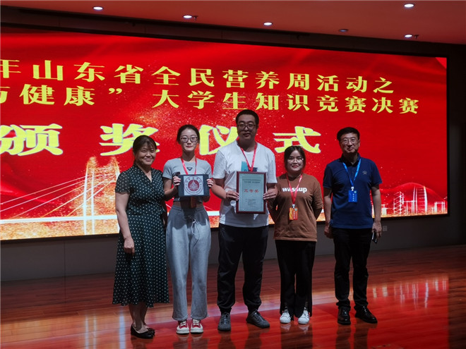 6月17日,2023年山东省全民营养周活动之“营养与健康”大学生知识竞赛(现场环节)在济南市疾病预防控制中心举行,我校派出由2020级食品质量与安全专业本科生组成的代表队参加比赛并取得三等奖的好成绩。