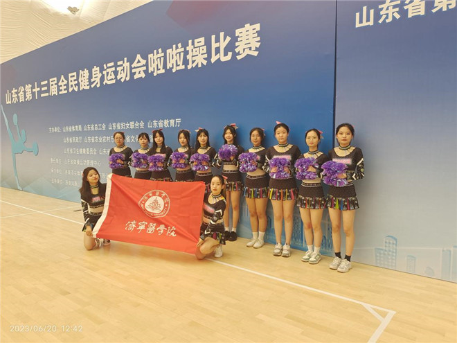 6月20日,山东省第十三届全民健身运动会在济南隆重开幕。我校啦啦操代表队在普通院校组比赛中荣获花球啦啦操规定动作一等奖,指导老师胡倩获得“优秀教练员”荣誉称号。