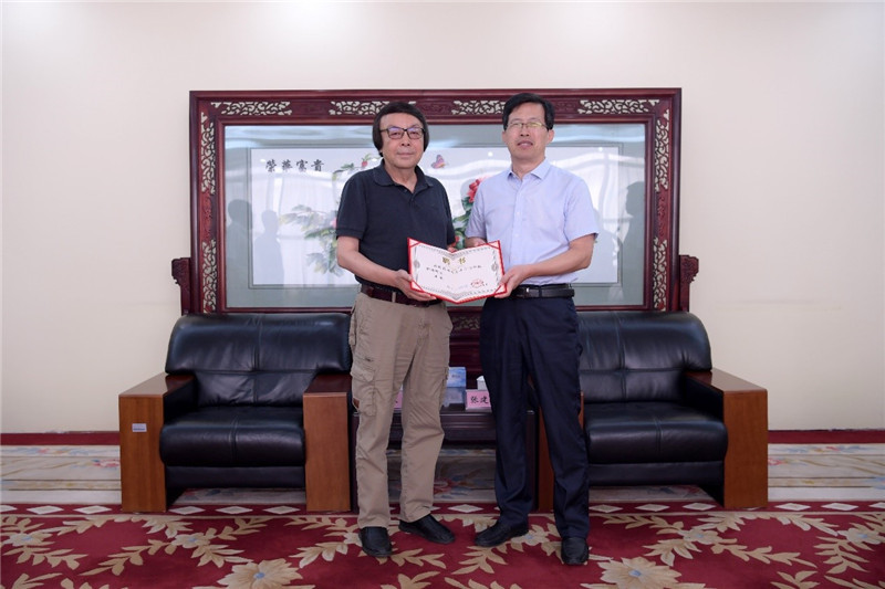 9月15日,北京大学第六医院张岱教授到校访问交流。学校党委书记张建华会见张岱,并颁发特聘教授聘书。