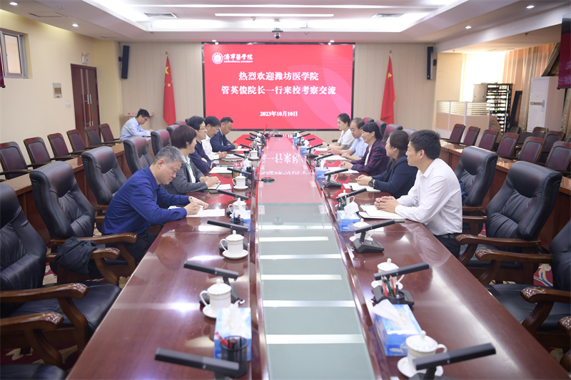 10月10日上午,潍坊医学院党委副书记、院长管英俊,党委委员、副院长梁淑娟一行5人来校考察交流。学校党委书记张建华,党委副书记、院长姚庆强,党委委员、副院长王慧云出席座谈会。