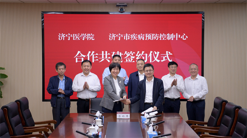 10月13日,学校在太白湖校区与济宁市疾病预防控制中心签订共建医教研防融合中心协议。学校党委书记张建华,党委委员、副院长王慧云,济宁市卫生健康委员会党组副书记、疾病预防控制中心党委书记仲曙光,济宁市疾病预防控制中心党委副书记、主任梁玉民出席活动。