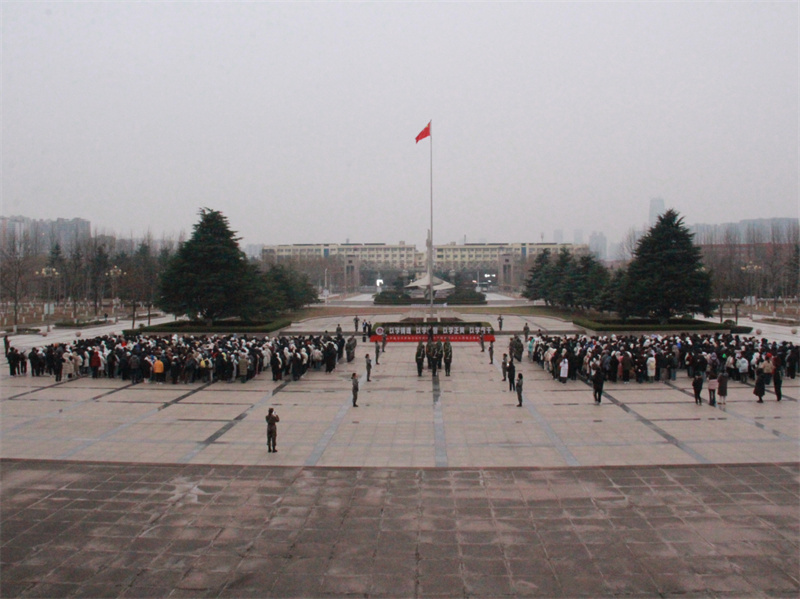 为深切悼念南京大屠杀遇难同胞,牢记历史、珍爱和平,激励广大青年学子不断弘扬以爱国主义为核心的伟大民族精神,12月13日,学校在太白湖校区和日照校区举行国家公祭日升旗活动。