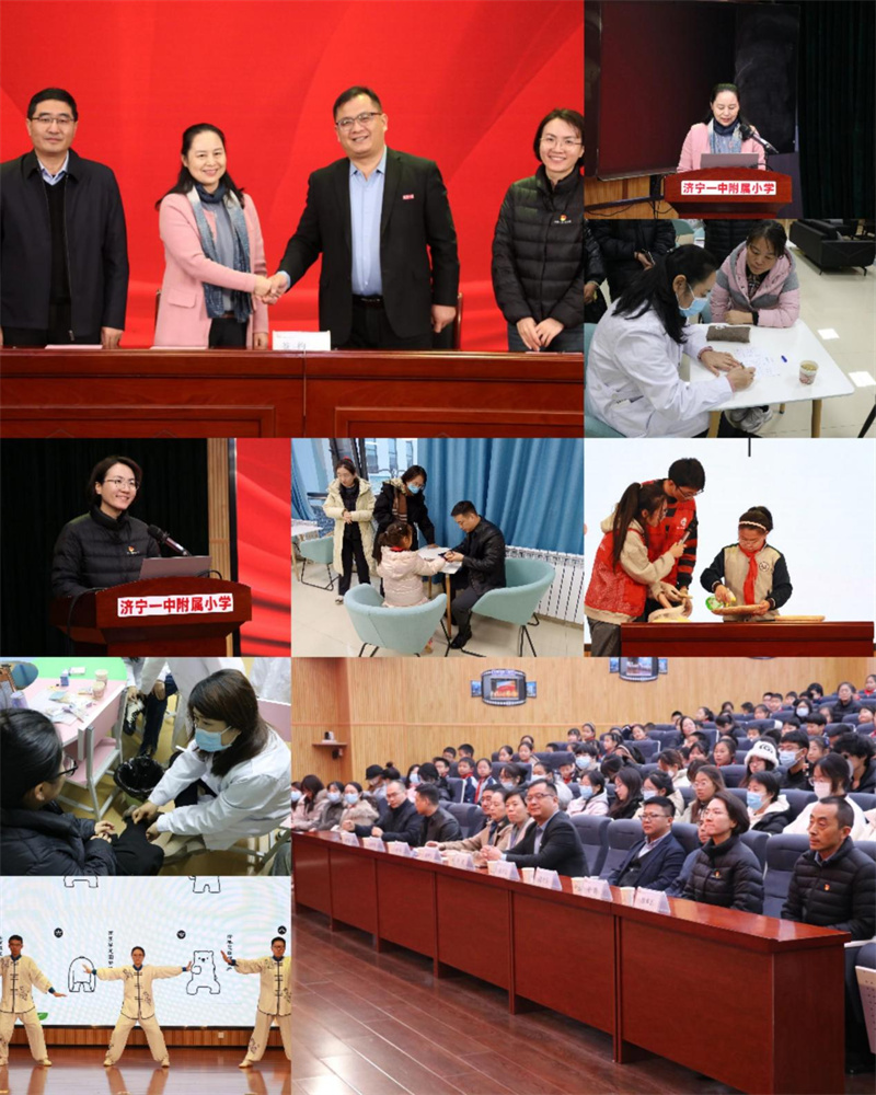 仪式现场,中西医结合学院与济宁一中附属小学签订党建共建和中医药文化进校园合作协议。领导嘉宾与学校师生们先后观看和体验了八段锦表演,中医药膳、中医药标本等展出。现场还举行了健康义诊,中医药科普知识讲座,中医药情景剧展演,开展了中药材手工制作等丰富多彩的中医药健康文化宣传活动,师生们共同感受中医药文化魅力。