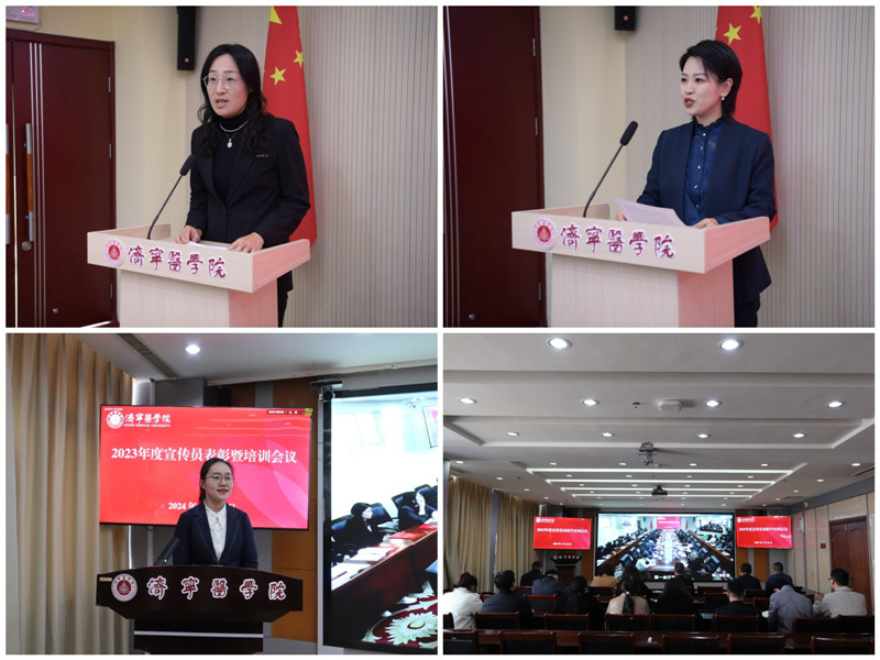 学校2023年度优秀宣传员机关党委郭娜、基础医学院陈林、日照校区管理办公室唐哲涵分别作交流发言。