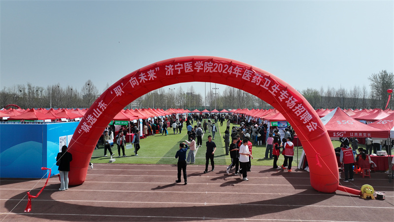 3月29日,学校在太白湖校区体育场举办“就选山东 ‘职’向未来”济宁医学院2024年医药卫生专场招聘会。党委书记张建华,党委委员、副院长王文姮,济宁市人力资源和社会保障局党组书记、局长刘东利,党组成员、市公共就业人才服务中心党委书记、主任任宪民到招聘会现场了解用人需求,与应聘毕业生亲切交谈,为他们求职加油鼓劲。