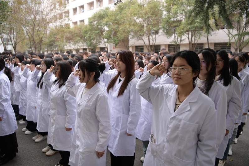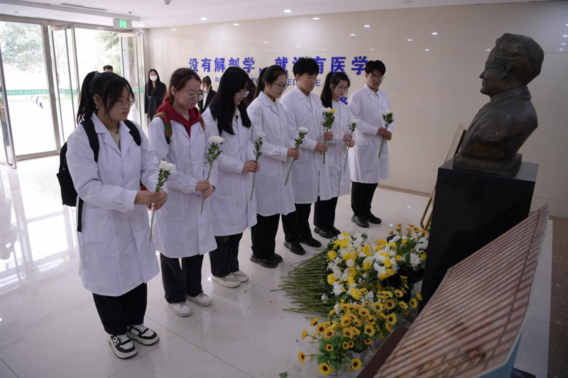 师生代表共300余人参加此次活动。清明时节组织开展“致敬无语良师”主题活动,已成为学校的一项传统活动,更是一堂特殊的思想政治课。“致敬无语良师”等生命文化仪式教育的开展,让医学生在潜移默化中体验生命的宝贵,培养医学生的儒医风范和大爱精神,从而具有仁心仁术的情操和修养,弘扬大医精诚之德、践行救死扶伤之志,为健康中国贡献济医力量。