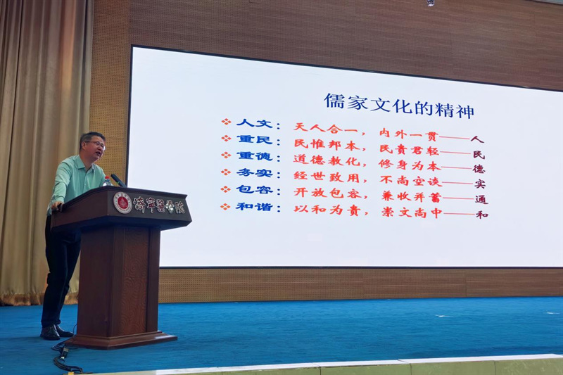 活动特别邀请曲阜师范大学优秀传统文化教育中心副主任、孔子文化研究院副院长、礼乐文化研究与推广中心主任,硕士生导师,宋立林教授作题为《青春·儒学·智慧——儒学的时代价值》的主题讲座。宋立林深入浅出地阐述儒学精髓及时代意义,引导青年人坚定文化自信,学以成人,勇担青春使命。