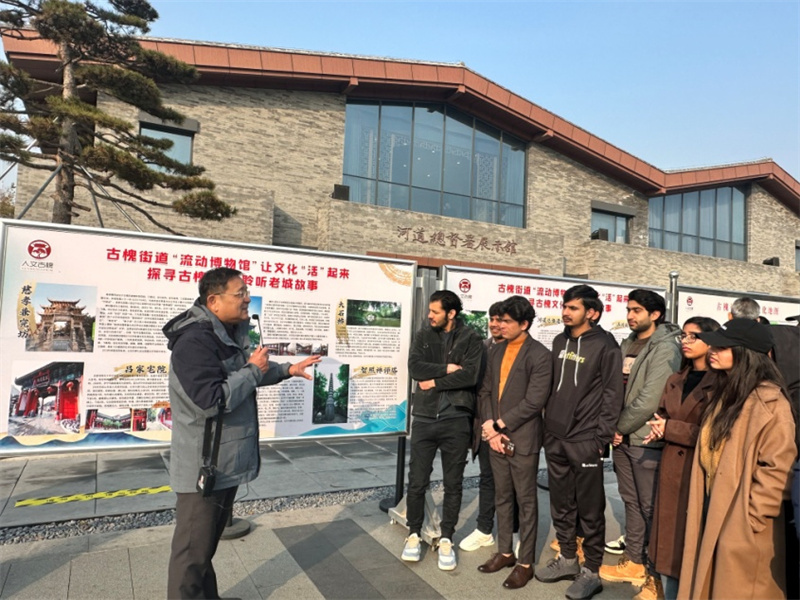 为充分展示中华优秀传统文化和济宁历史文化底蕴,宣传独具特色的运河文化,12月4日上午,学校联合曲阜师范大学、济宁市技师学院、济宁市知联会、任城知联会、古槐街道等多家单位,共同开展“感悟中华文化之美 助推中外文明互鉴”中国国情教育实践活动。来自学校国际教育学院的30余名留学生走进济宁河道总督署遗址公园,通过现场教学、互动体验等开展一系列非遗交流体验活动。