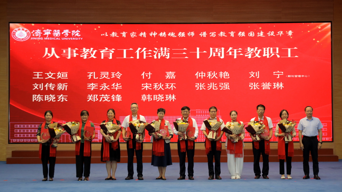 李栋代表学校向奋战在教学、科研、医疗、管理、工勤等岗位上的全校教职医护员工致以节日问候,向所有受表彰的教职工表示祝贺,向荣休教职工和从事教育工作满三十年教职工致以崇高敬意,向新入职教职工表示诚挚欢迎。