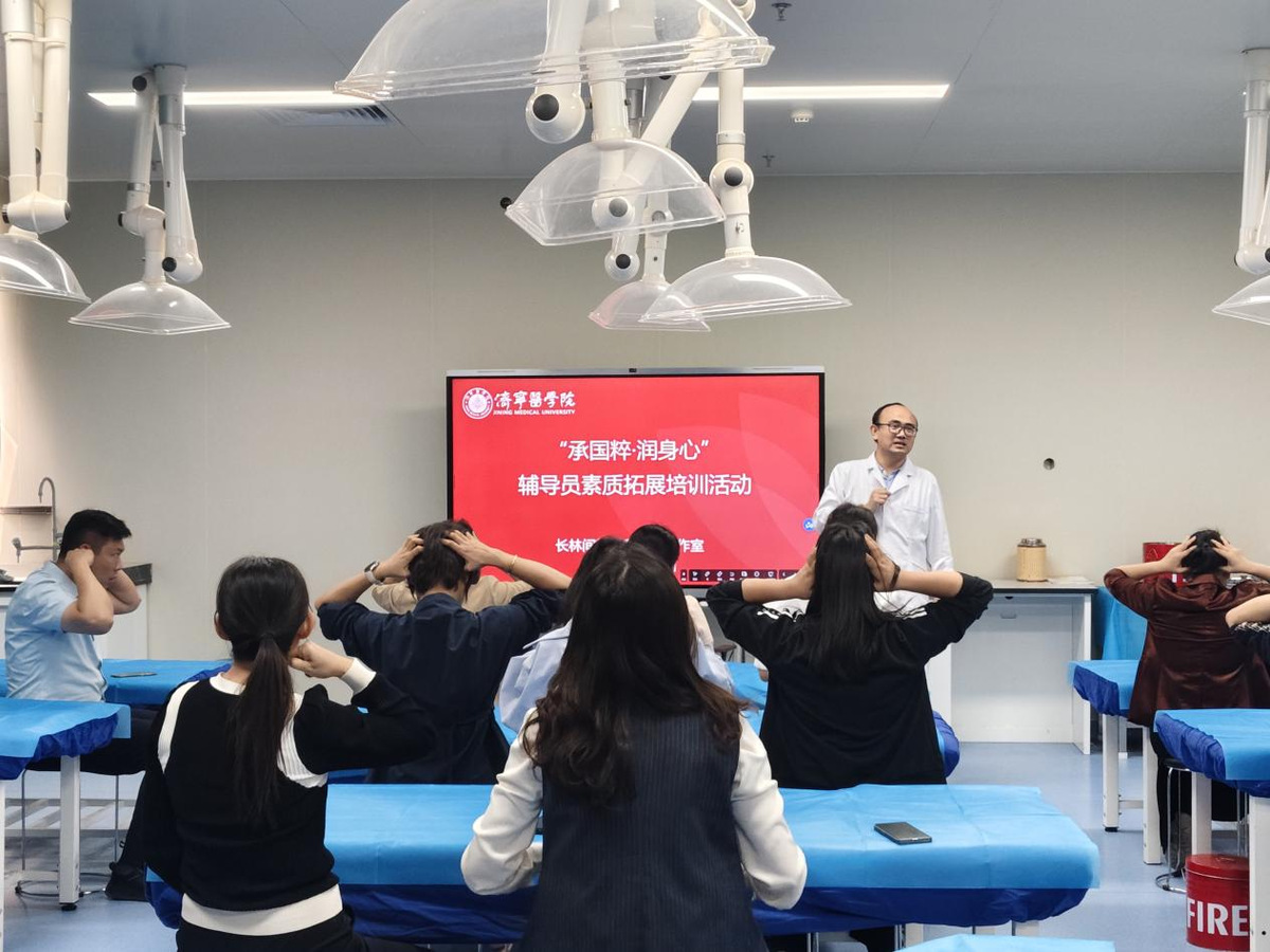 为深入落实立德树人根本任务,将中华优秀传统文化融入辅导员身心健康关怀体系,切实提升辅导员的职业幸福感与团队凝聚力,9月25日上午,由学生工作处主办、长林间辅导员领航工作室承办的“承国粹 润身心”辅导员素质拓展培训活动在太白湖校区中医综合实训中心举行。中西医结合学院针灸推拿教研室主任郑灿磊、青年教师颜晓作专题讲解并进行现场指导。