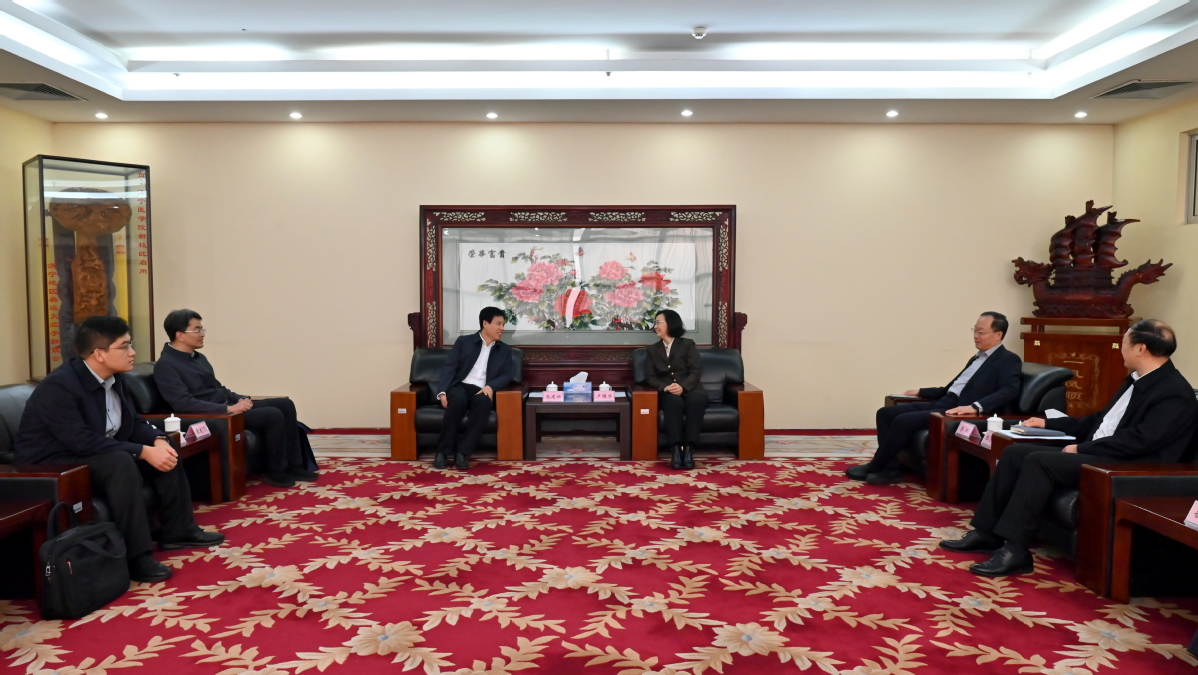 卢国华代表学校对庞建栋一行表示热烈欢迎,并简要介绍了学校近年来在人才培养、学科建设、科学研究、社会服务等方面取得的成果。她指出,学校始终以服务地方经济社会发展为己任,积极融入济宁发展大局,精准对接医药健康产业需求,持续深化校企协同创新,加快推进科技成果转化。在基层党建方面,学校严格落实新时代党的建设总要求,深入开展基层党组织规范提升行动,推动党建与事业发展深度融合,以高质量党建引领高质量发展。在人才队伍建设方面,学校深入实施“人才强校”战略,持续完善“育引服用”全链条工作机制,师资结构不断优化,为高质量发展提供了坚实人才支撑。她表示,学校将充分发挥临床医学、精神医学等学科专业优势,强化附属医院示范引领作用,为“健康济宁”建设提供坚强的人才支撑和智力保障。