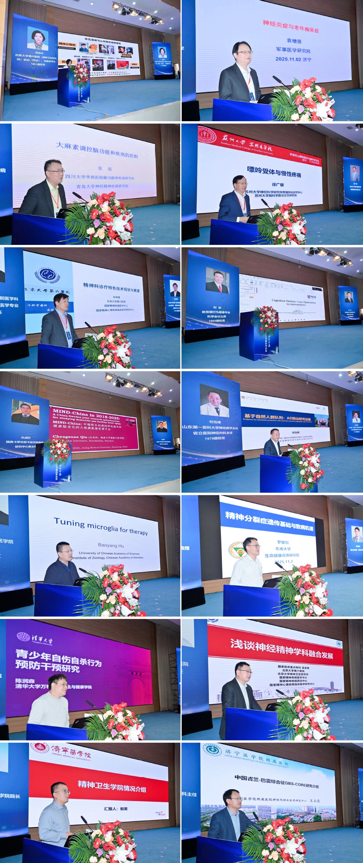 新加坡国立大学的封磊教授通过线上方式,介绍了“Cognitive decline in Chinese: from observation to intervention”的研究成果,为认知功能下降的干预策略提供了新思路。瑞典卡罗林斯卡医学院的仇成轩教授(线上)分享了“中国-瑞典联合创建的研究老年脑健康的大型数据库资源”,为老年脑健康研究提供了宝贵的数据支持。山东省立医院神经内科主任,泰山学者特聘专家、我校1978级校友杜怡峰教授基于MIND-CHINA队列,详细阐述了痴呆防治的证据与实践。中国科学院干细胞与再生医学创新研究院院长、教育部长江学者、我校1990级校友胡宝洋教授探讨了“Tuning microglia for therapy”,为神经疾病治疗开辟了新途径。东南大学生命健康高等研究院,国家杰出青年基金获得者罗雄剑教授通过基因层面分析,揭示了精神分裂症的遗传病因及潜在治疗靶点。清华大学万科公共卫生与健康学院特别研究员、国家优秀青年基金获得者陈润森教授研究了“青少年自伤与自杀行为的预防干预”,为青少年心理健康保护提供了科学依据与实用建议。北京大学第六医院神经内科主任,我校2001级校友袁俊亮教授分享了神经精神学科融合发展的初步经验,为学科交叉融合提供了有益借鉴。济宁医学院的郁昊教授回顾了学校精神医学学科的发展历程,展现了学校在该领域的深厚积淀与辉煌成就。济宁医学院附属医院的王玉忠教授介绍了中国吉兰-巴雷综合征GBS-CORE研究的相关情况,为该领域的研究提供了新的方向。