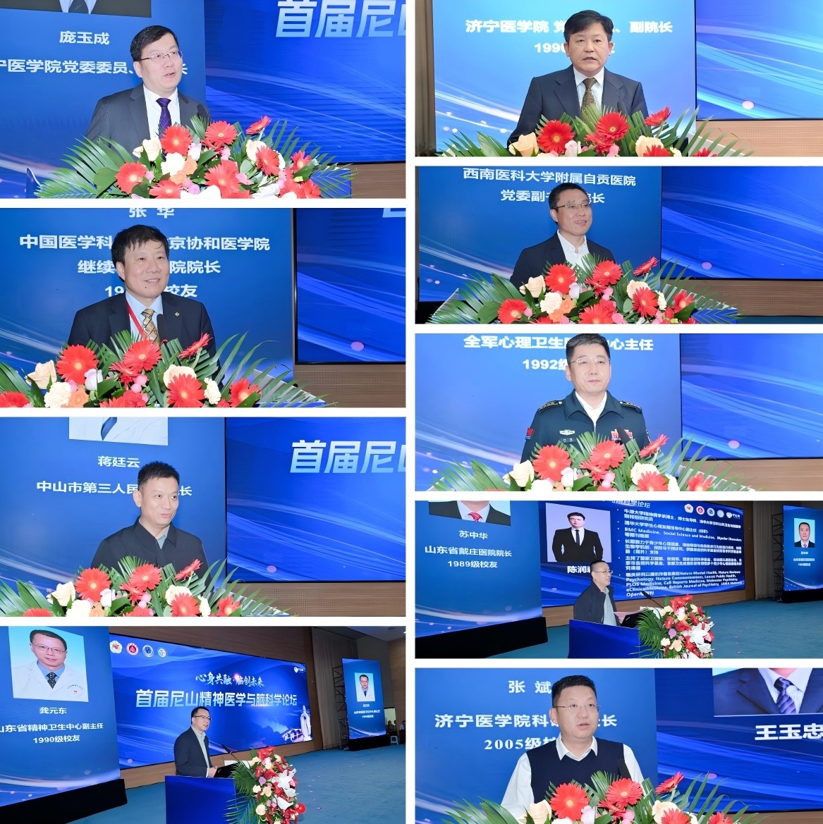 北京大学第六医院(精神卫生研究所)院长(所长)、党委副书记、我校1991级校友岳伟华,首都医科大学附属北京安定医院党委书记、我校1982级校友许峻峰,国家心理健康和精神卫生防治中心党委委员、副主任王钢,中国医学科学院北京协和医学院继续教育学院院长、我校1984级校友张华,甘肃省卫生健康委党组成员、我校1997级校友肖砾,全军心理卫生服务中心主任、我校1992级校友许鹏,山东省戴庄医院院长、我校1989级校友苏中华,自贡市精神卫生中心院长、我校1993级校友刘可智,山东省精神卫生中心副院长、我校1990级校友龚元东,我校党委原副书记、院长、中华医学会行为医学分会第五、六届主任委员、《中华行为医学与脑科学杂志》总编辑白波教授参加会议;学校党委书记卢国华出席开幕式并致辞,党委副书记、院长李栋主持开幕式,党委委员、副院长庞玉成主持专题报告,党委委员、副院长刘传新致闭幕词。