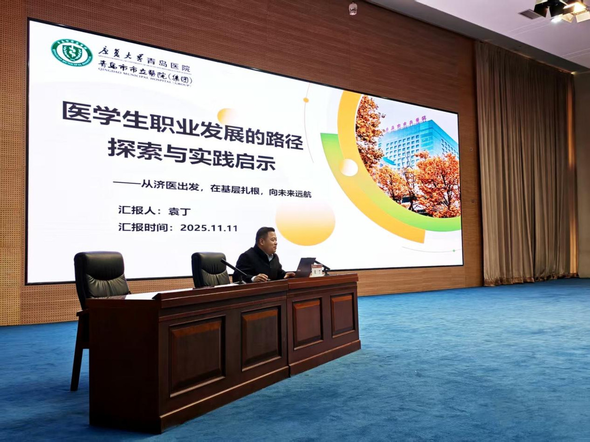 为深入贯彻落实《2025年山东共青团大学生就业引航计划工作指引》要求,帮助学生明晰职业发展方向、提升就业核心竞争力,11月11日,我校大学生就业引航计划宣讲会在太白湖校区举行。我校2009级校友、青岛市市立医院基层医疗管理科主任、东院区内科党总支书记袁丁主治医师受邀担任主讲人。