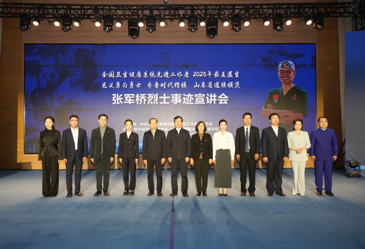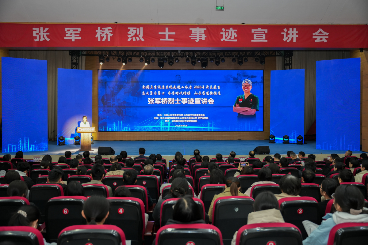 11月20日晚,由省委宣传部、省卫生健康委员会指导,潍坊市委宣传部、山东第二医科大学与我校共同主办的张军桥烈士事迹宣讲会在太白湖校区举行。山东第二医科大学党委书记张建华,我校党委书记卢国华,副书记、院长李栋,山东第二医科大学党委副书记徐杰,党委委员、宣传部(教师工作部)部长田玉胜,济宁医学院党委班子成员参加活动。