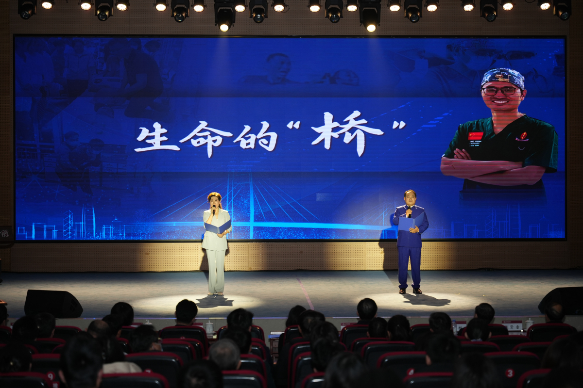 专题片《生命至上》以张军桥的生命轨迹为脉络,将“医学人文”的温度与“生命至上”的信仰深度交织,铺展一位医者用38年人生诠释“敬佑生命、大爱无疆”的动人答卷;情景对白《心痛的告别》,以隔空对话的形式,演绎了一场震撼心灵的告别,礼赞了超越生死的医者仁心,引发对生命价值与意义的深层思考;诗朗诵《生命的“桥”》,以公益、担当、救援、友谊等多重桥的意象展现张军桥医生跨越国界、生死与职业的精神丰碑;原创MV《张军桥 一生为救人》,深切缅怀了张军桥同志“一生为救人”的崇高信念和奉献精神,深深打动了在场观众。