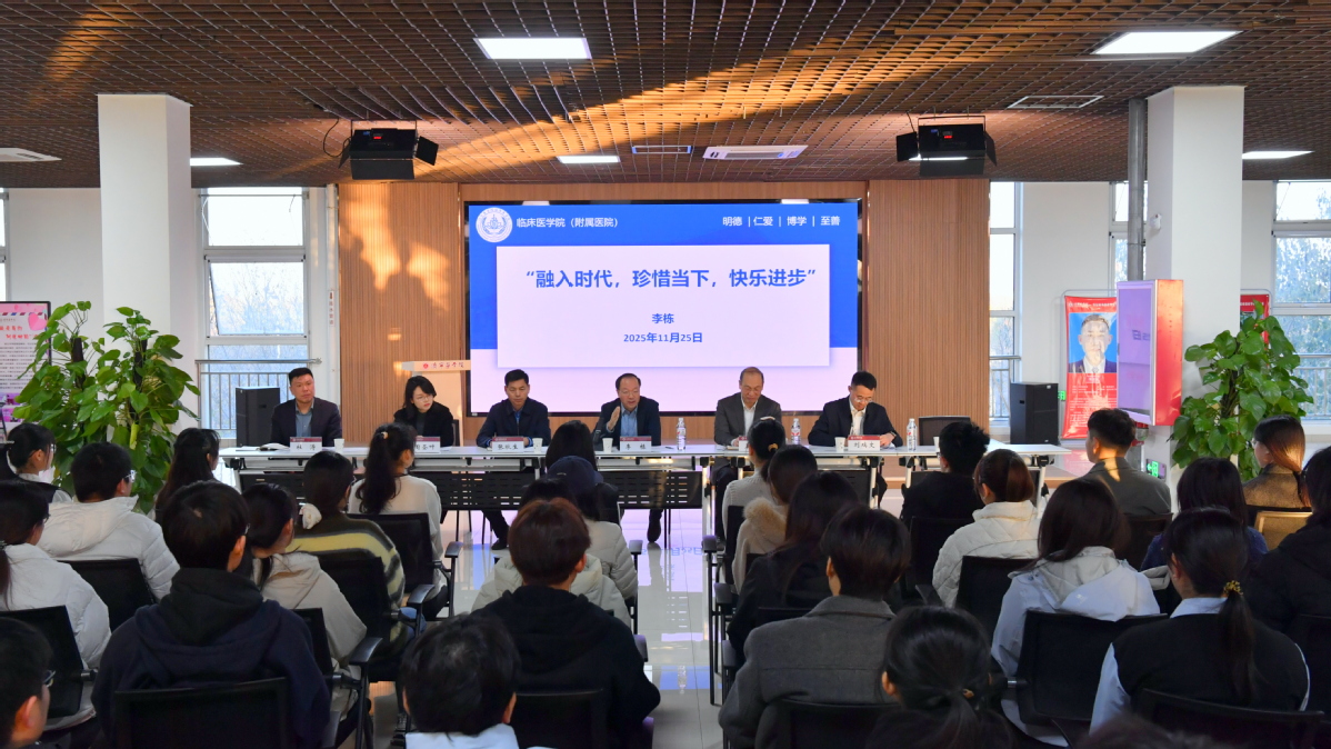 李栋听取了班级思想引领、学风建设、科研创新等情况汇报,对班级取得的成绩给予充分肯定。座谈会上,李栋结合个人学习、工作经历,围绕学子提出的问题,进行了详细解答,并对同学们提出殷切希望。一要主动融入时代浪潮,精研专业、锤炼本领,在医学学科战略转型中找准方向,以坚定信念和扎实学识应对行业变革与经济环境挑战,在中国式现代化的广阔舞台上实现人生价值。二要珍惜大学宝贵时光,永葆对知识与生活的热忱好奇,在“明德、仁爱、博学、至善”校训精神浸润中涵养品格,以“既往不恋、当下不杂、未来不迎”的智慧专注当下,积极参与智慧课程和智慧校园建设,为学校发展贡献青春力量。三要保持昂扬奋进精神,积极融入“教育为本、学术为基”教学共同体和“尊重教师、善待学生”师生共同体建设,保持昂扬奋进精神风貌,尊重老师、善待同窗、快乐成长,努力成为品德高尚、业务精湛、身心健康、全面发展的高素质优秀人才。