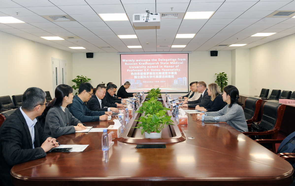 12月15日,俄罗斯克拉斯诺亚尔斯克国立医科大学副校长谢斯特尼亚·帕维尔·阿纳托利耶维奇一行来我校访问,学校党委委员、副院长甘立军出席活动。
