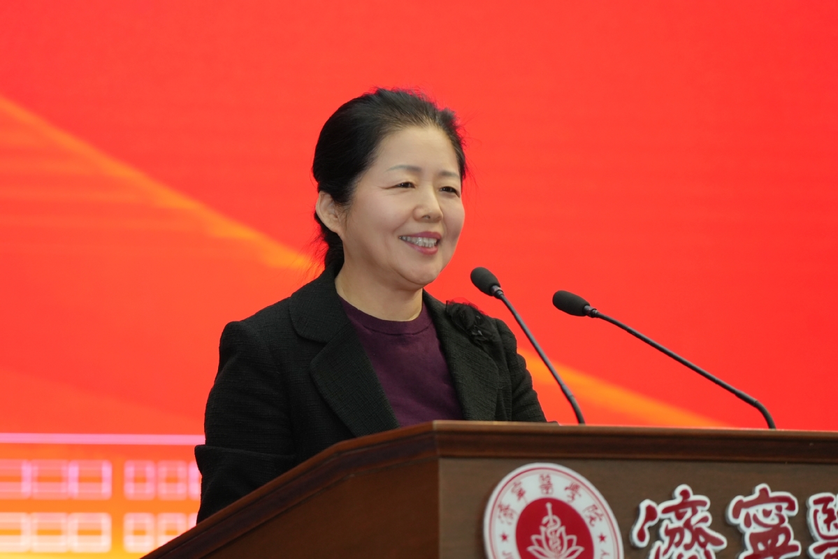 开幕式上,卢国华在致辞中代表学校向与会嘉宾表示热烈欢迎和诚挚谢意。她指出,学校深入学习贯彻习近平文化思想,认真落实党的二十届四中全会精神,坚持以文化人、以文育人,始终将文化传承与医学教育深度融合,把“儒医”文化作为立德树人的重要载体,将“仁爱济世、大医精诚”的价值追求贯穿办学始终。建校73年来,学校始终坚持“为国家育人才,为大众谋健康”办学宗旨,秉承“明德、仁爱、博学、至善”的校训,以“仁爱”为核心的儒医文化传承发展,着力开展以儒家文化为底蕴、融合医学特色的“儒医”文化教育,将“大爱”特色文化内涵写进办学方略,逐步形成了以“儒医文化”和“大爱精神”为特色的济医文化,构建起“仁心仁术、德医双馨”的儒医育人体系和微环境润心、中环境陶染、内环境淬炼、外环境协同的全环境立德树人“生态圈”。她表示,本次研讨会既是一次凝聚智慧的思想盛宴,也是一次深化“大思政”育人格局的生动实践。她希望,通过本次研讨会,与各位专家学者、兄弟院校进一步拓展合作、深化友谊,共同为弘扬中华优秀传统文化、推进健康中国建设作出新的更大贡献。