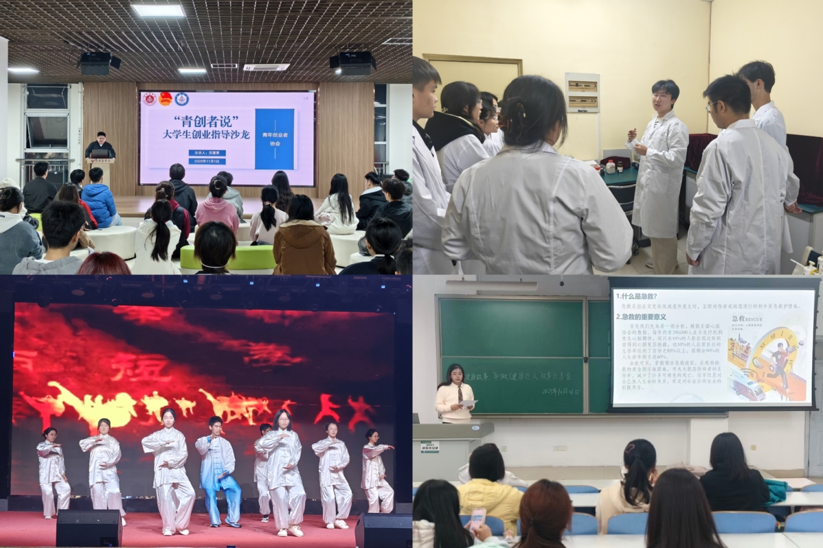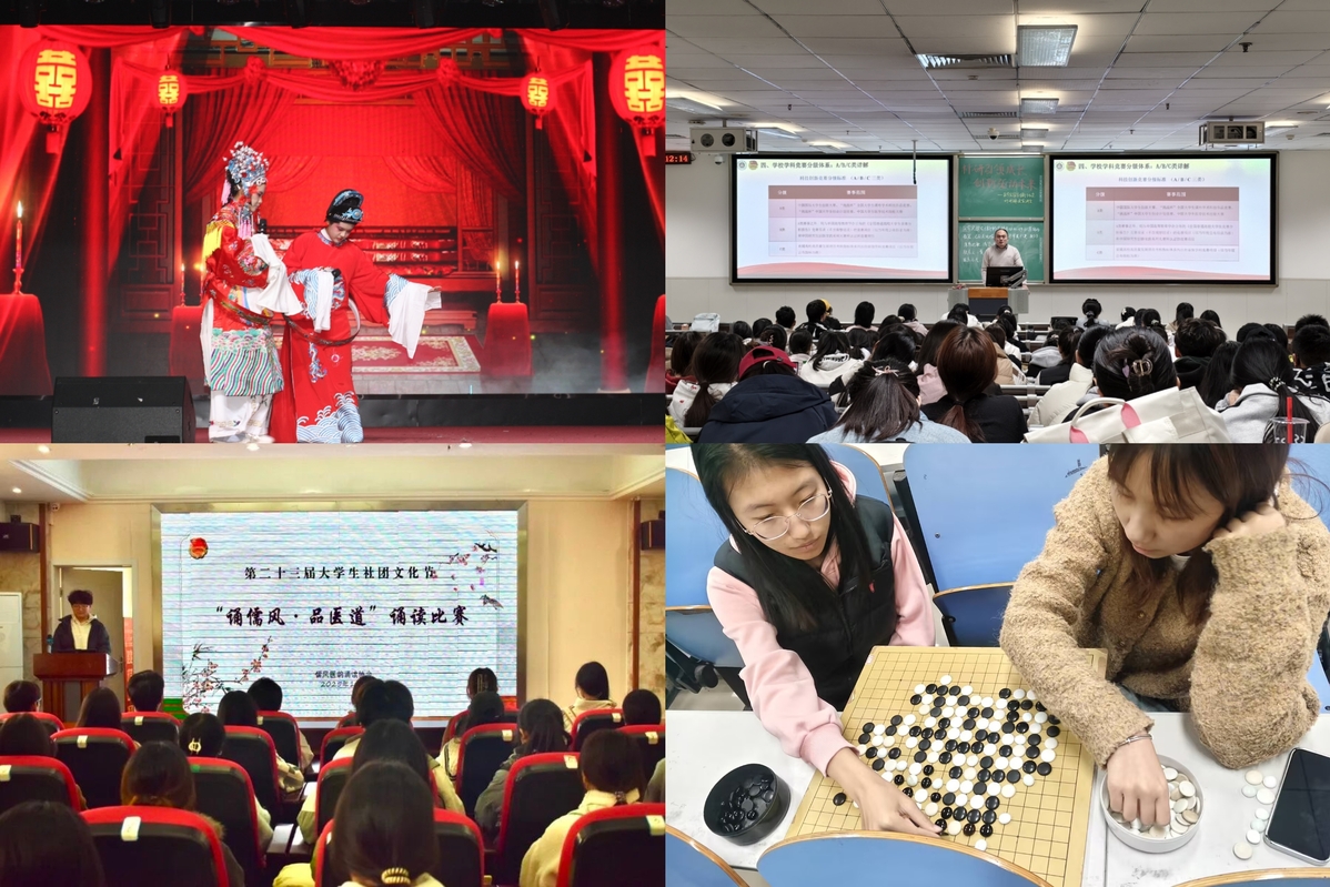 竞赛竞技,彰显青春力量。涵盖学术、文艺、体育等领域的竞赛活动精彩纷呈,成为同学们锤炼自我、挑战自我的舞台。3v3校园半场篮球赛、“轻羽飞扬”羽毛球赛、“跃动乒乓”挑战赛等激扬运动热情;“汉字争霸”书写比赛、“诵儒风・品医道”诵读比赛、舞蹈比赛等尽展文艺才华;学术征文、健康知识竞赛、国防安全演讲比赛等夯实专业素养。各类赛事中,同学们奋勇争先、团结协作,生动体现了济医青年昂扬进取、蓬勃向上的精神风貌。