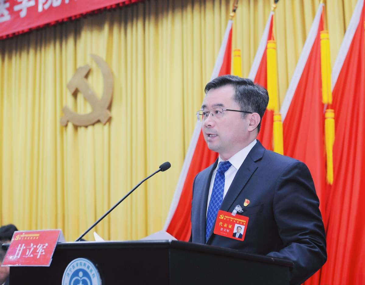 甘立军作了题为《守正创新 提质增效 为全面建设国内知名、省内领先的区域医学中心而努力奋斗》的报告,报告全面总结了第一次党代会以来取得的显著成绩,圆满完成上次党代会确定的目标任务,为实现更高水平发展奠定了坚实基础。报告指出,第一次党代会以来,附属医院在省委、省政府、省卫生健康委和学校党委的坚强领导下,在济宁市委、市政府及市卫生健康委等有关部门的大力支持下,党的建设全面加强,成功开辟了“一院两区”协同发展新格局,完成干部人事制度改革,构建起支撑长远发展的医院治理六大体系,省级区域医疗中心的辐射带动作用日益凸显,高质量完成第一次党代会“三步走”战略中第一步目标,医院综合实力达到了历史新高度,阔步迈入了高质量发展新阶段。