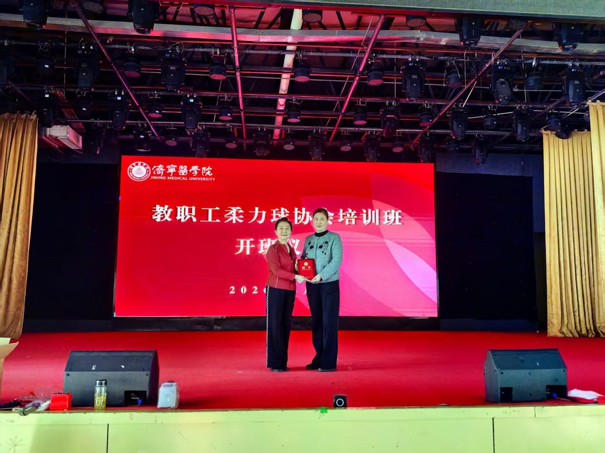 仪式上,校工会主席邱玉环为万娟颁发柔力球协会指导教师聘书。