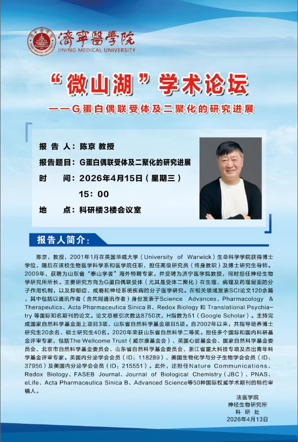 "微山湖”学术论坛——G蛋白偶联受体及二聚化的研究进展