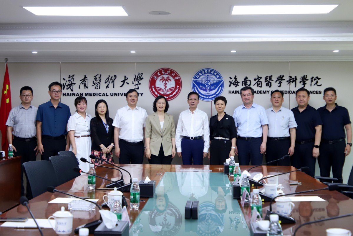 在海口期间,卢国华一行与海南医科大学党委书记张彩虹,中国科学院院士、校长陈国强,围绕学科专业建设和内部治理体系改革深入交流座谈,他们分别介绍了近年来海医在干部队伍建设、人才队伍建设、科研平台建设、学科专业布局优化、绩效分配制度改革等方面的思路举措与显著成效。双方就干部队伍建设、学科带头人培养、校院权责划分、内部治理体系完善等具体问题进行了深入探讨交流。卢国华对海医改革实施的创新性举措和取得显著成效给予高度赞赏,她表示,近年来海医大胆探索、勇于创新、破立并举,推动系统性改革,实现跨越式发展,令人印象深刻、深受触动,学校将认真学习借鉴海南医科大学的好经验好做法,在“十五五”期间进一步优化学科专业布局,深化内部治理体系改革,不断提升办学治校水平,希望两校保持密切交流、互学互鉴,深化合作、共同进步。