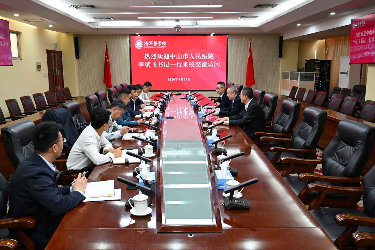 4月20日,中山市人民医院党委书记李斌飞一行来校考察交流,学校党委副书记、院长李栋,党委委员、副院长刘传新出席活动。