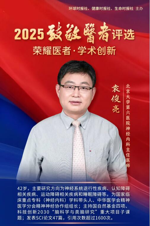 11月28日,由环球时报、健康时报、生命时报联合主办的“2025致敬医者盛典”在人民日报社隆重举行。我校2001级临床医学专业校友、北京大学第六医院神经内科主任、主任医师袁俊亮,凭借其在医学学术领域的杰出贡献,荣获“荣耀医者·学术创新奖”。本届盛典旨在深入贯彻落实习近平总书记关于“营造全社会尊医重卫良好风气”的重要指示精神,通过讲述医者仁心仁术的感人故事,大力弘扬“敬佑生命、救死扶伤、甘于奉献、大爱无疆”的崇高职业精神。第十二届、十三届全国人大常委会副委员长王晨、人民日报社总编辑陈建文等出席活动并致辞。袁俊亮校友获此殊荣,不仅体现了对其个人医德医术与科研创新能力的高度认可,也是我校长期坚持立德树人、致力于培养卓越医学人才的重要成果展示。袁俊亮校友现任北京大学第六医院神经内科主任、主任医师、副教授、博士生导师,曾于哈佛大学医学院从事博士后研究,是国家临床重点专科(神经内科)的学科带头人。他在学术领域兼任中华医学会精神医学分会精神神经协作组组长、中国微循环学会神经变性病专委会青年委员会主任委员等职务。主要研究方向为神经系统退行性疾病、认知与运动障碍相关疾病。作为学术创新的践行者,袁俊亮校友