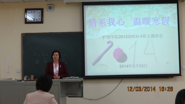 3月12日下午,副院长赵敏走进教学楼207教室,参加了联系班级2012级护理本科急危重症1班的“情系