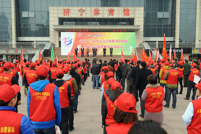 3月5日上午,“人文济宁 志愿省运”第二十三届省运会志愿服务队授旗暨社会志愿者招募启动仪式在济宁市全
