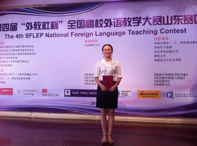 张洁荣获第四届“外教社杯”全国高校外语教学大赛山东赛区三等奖